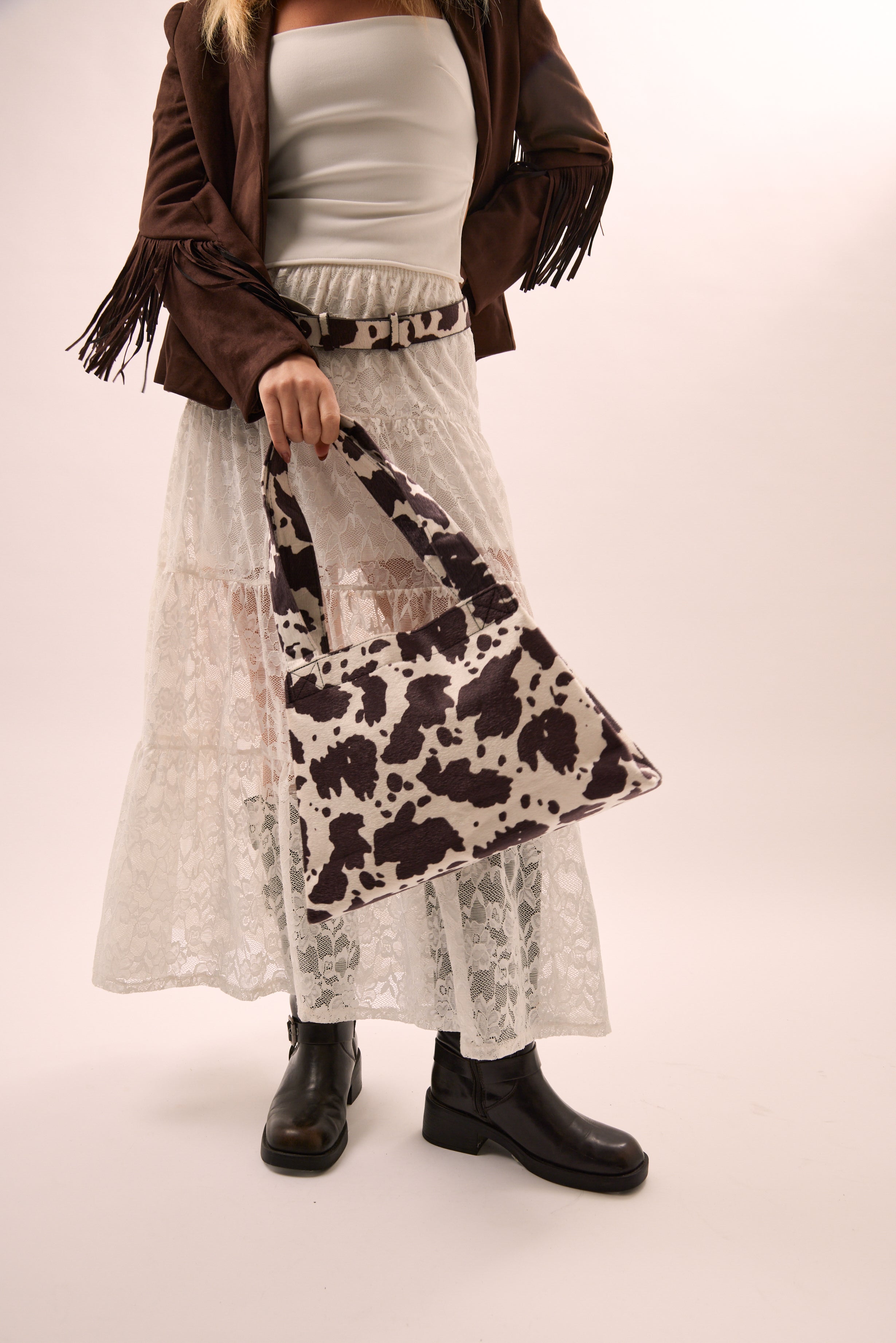Boot up your style with faux pony skin accessories in bold cow and zebra prints, because nothing says “western with a twist” like a bit of wild texture. These pieces are perfect for that ultimate western look, whether you're keeping it casual or going full rodeo glam.