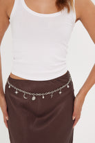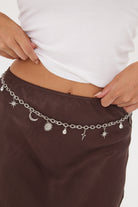 Your new go-to charm accessory for serving major looks! This belt intricately designed and crafted from mini celestial stars and sparkle themed charms. This belt is the perfect blend of glam and fun to level up any outfit. Featuring chain link design, a lobster claw clip and chain fixture, it can be altered to your desire, as a waist or hip belt.