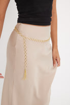 Your new go-to charm accessory for serving major looks! This belt intricately designed and crafted from round chain links with a tassel detail at the end. This belt is the perfect blend of glam and fun to level up any outfit. Featuring chain link design, a lobster claw clip and chain fixture, it can be altered to your desire, as a waist or hip belt.