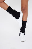 Designed in a modern ribbed knit with a subtle front slit, these leg warmers bring a sleek, edge to a retro inspired accessory. The black colour makes them endlessly versatile, perfect for styling with boots, trainers, or heels. Available in other colours.