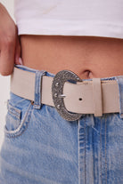 Suede Western Belt in Cream and Silver