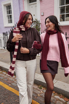 Brighten up your winter wardrobe with our fun striped knitted scarf. Made from a soft knit, this cosy scarf combines playful pink and deep burgundy stripes for a bold yet versatile look. Oversized in design, it’s perfect for layering, wrapping, or draping, making it your go to accessory for both everyday wear and statement styling.