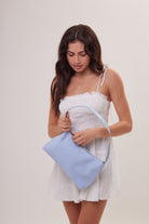 The super soft slouchy faux-suede Shoulder Bag in sky blue is soft, stylish, and seriously versatile. Its relaxed silhouette delivers timeless style and adaptability, making it an effortlessly chic choice for various occasions.